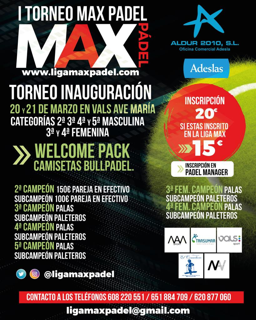 I TORNEO MAX PADEL. (INAUGURACIÓN LIGA MAX)