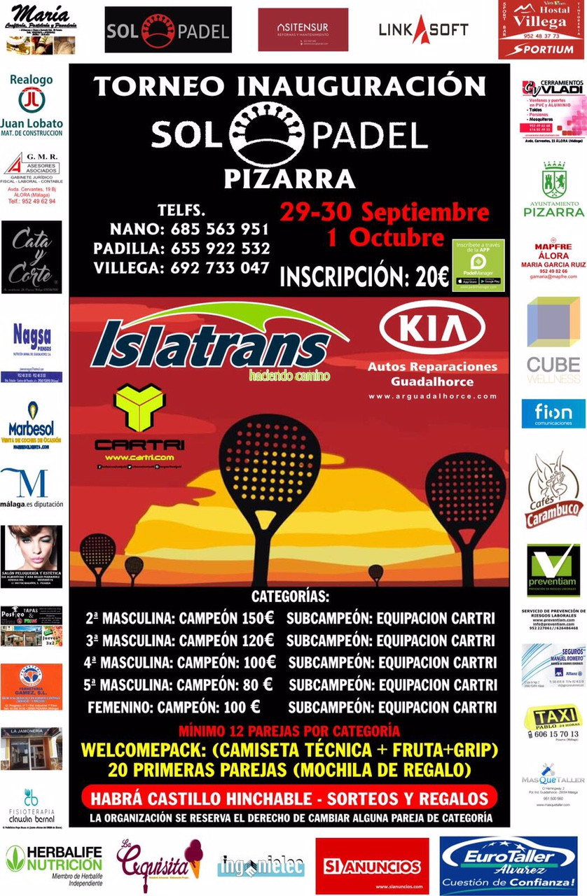 TORNEO INAGURACION SOL PADEL PIZARRA